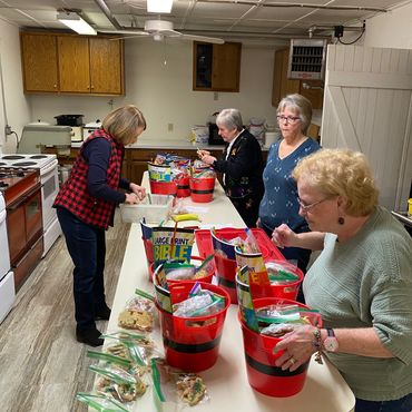 In December each year, our ladies gathered together to fill this year's Santa Buckets for our homebound members and others in the community. Each bucket was filled with fruit, candy, homemade cookies, word search books and other goodies which we then delivered. With each bucket delivered we spent time visiting with the families and let them know that our church family is there for whatever they need. The gratitude and joy on their faces reinforced how we can share God's love with everyone and bring a little Christmas spirit along the way.